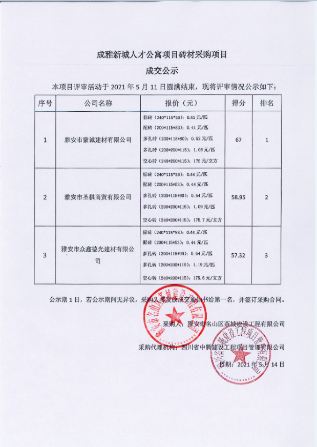 成雅工業園區百丈安置房二期彩色透水混凝土(包工包料)采購項目詢價結果公告...